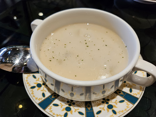 女兒學校的外籍老師推薦說很好吃 也很少吃印度料理 所以來嘗鮮看看~🤣🤣🤣 附近是巷子,若要來,建議騎機車 如果停車,就要走一小段路 住在逢甲是最方便的~😝 忘記拍菜單,所以無法分享他菜單內容 今天點了 起司烤餅、青椒洋蔥羊肉咖哩、窯烤香料雞腿、 綜合香料烤餅~ 飲料印度香料奶茶和芒果酸奶 起手式,老闆就端出濃湯 因為濃湯有西洋芹,所以我家老爺勉強喝完,但我個人覺得濃湯的味道很讚,感覺是放很多食材下去燉煮的👍 起司烤餅是在烤餅裡面加上起司 口感紮實,起司不會過膩 搭配羊肉咖哩吃~很好吃捏😋 青椒洋蔥羊肉咖哩- 因為我本人真的比較清淡口味,所以對我而言,這道咖哩是比較重口味的 咖哩微微辣,羊肉燉的很嫩,沒有羊騷味,吃起來非常下飯 羊肉咖哩的量,可以給三個成人吃的份量,可以考慮點白飯來配🤔🤔🤔 窯烤香料雞腿- 香氣不錯,但肉質較偏乾😏 如果單純咬,要慢慢的咬,會感受到肉裡面的香料味道,屬於要細細品嚐的菜餚,旁邊搭配的綠色香料醬汁,帶點微微辣,沾著雞肉吃,就比較不會覺得肉很乾;蔬菜搭配著吃,更爽口,可惜蔬菜不多,不然洋蔥真的很好吃😋😋😋 綜合香料烤餅- 烤餅上面撒著綜合香料,直接單吃就非常美味,烤餅趁熱吃是會脆脆的口感,鹹香鹹香的味道,如果沒有吃其他的東西,是可以一個人吃完這個烤餅的❤️ 因為羊肉咖哩的量真的頗多,所以只好搭配烤餅吃光光🤭🤭🤭 印度香料奶茶- 如果是奶茶控(甜的那一種),那這個奶茶就不會是你的菜,因為喝起來有點鹹甜的味道(有點像加了七味粉的奶茶😱),所以也不是我的菜...😟 芒果酸奶- 這個芒果的香氣很濃,就像是芒果冰淇淋化掉的奶昔狀態,吃了一堆印度料理之後,喝一口芒果酸奶,好搭😍 因為是新開的店,所以老闆有招待一碗小米布丁🫶 小米布丁吃起來的口感像吃臺灣的小米粥,不過甜度較甜,適合吃一點就好,如果本身是螞蟻,可能會覺得還好 以上就是本次嚐鮮的心得 推薦給大家吃 因為東西不算貴又好吃 下次再來吃其他的品項~~