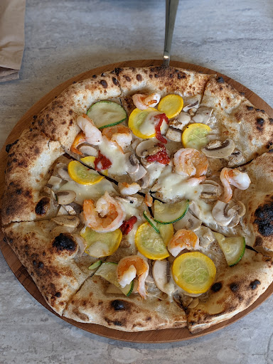 As a chef and foodie this is a difficult place for me to review as some things were fantastic and others quite disappointing. The pizza dough was good and lightly sweet, with nice black blotches on the crust, and the shrimp and zucchini were nice, but the third ingredient on a three ingredients pizza was virtually non-existent. The sliced Beef Tongue dish was absolutely delicious but then the Green Salad was very disappointing with just some simple lettuce at NT280. Adding some form of protein to the salad is very crucial at that price, which could be in the form of parmesan slices, or an organic poached egg, or some roasted walnuts, or some fresh mozzarella. Also the lettuce should be a nice mix of organic greens to make it more fun and exciting, not just mostly Romaine lettuce. The building, the layout, the architecture, the atmosphere are all totally gorgeous, and the service was efficient and friendly. Put a little more thought and creativity into your dishes, and I'll come back and give...
