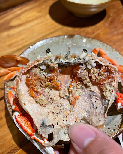 3.螃蟹味噌湯: 畢竟是「味噌湯」,喝起來還是味噌湯的味道多一些,可是有螃蟹的鮮味,螃蟹小小一隻也是有些肉,蟹黃也夠兩個人一人一口了,一碗$50算是CP很高。