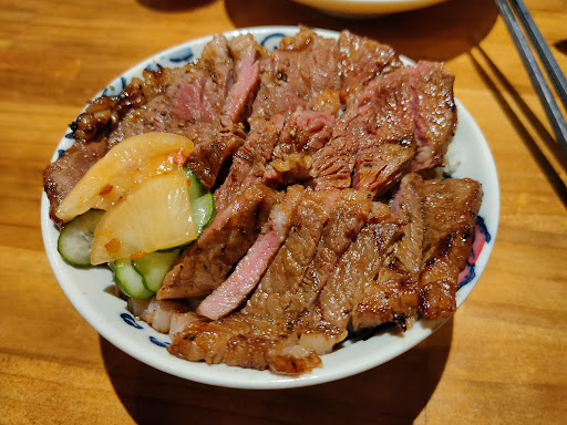 2.牛排飯份量不小: 有評論說牛排飯就那樣一點,還有10幾個人按讚,確實碗不大,但就跟一般連鎖丼飯店差不多的碗。牛排兩排,吃起來也是蠻不錯的,$200元而已去燒烤店點同部位的牛肉可能都沒有那麼多塊肉。