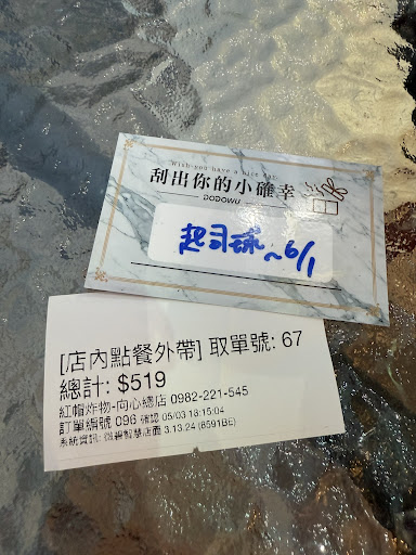 買單時現場排隊只有4位,(結果前面二個是訂餐後過來取餐的)以為人很少,可以停車後很快取餐離開!但是買單後給的號碼,只是應付親自到現場客戶的等候號碼!