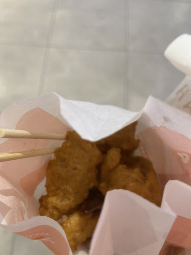 I'll give this place 1 star for getting the order correct. Now onto the review. This is a very famous and popular Taiwanese fried chicken branch. We ordered the 200 NTD set meal which contains boneless chicken chunks (emphasis on the word "chunks") and some Taiwanese tempura also. When the order arrived I thought someone had eaten out of my bag already. There were only about 4 tiny pieces of chicken in the bag and most of it was just skin and no meat. What an absolute rip off. The Taiwanese tempura is some kind of mochi or something deep fried and it is just bland and disappointing.