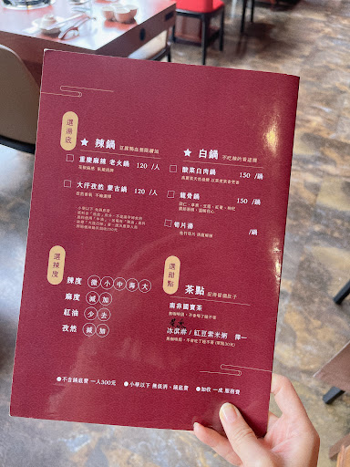 Read more2021/03 湯頭不會過鹹 麻度夠 湯底鴨血豆腐可續加 豆腐有入味口感也不錯 可刷卡 榮總有特約 付現9折 2022/04 麻辣鍋鍋底($100/人) 搭配鴛鴦鍋可選酸菜白肉/龍骨湯($150/鍋)或筍片湯($0) 培根牛($150)/板腱牛($200)/豬五花($130)都好吃也划算 巴沙魚($150)份量不小但可能還沒退冰口感軟軟 蝦滑($120)/川丸子($100)/蛋餃($70)也不錯 部分餐點可以點半份價格也沒比較貴 餐後有甜點是紅豆紫米湯 服務員很親切 2022/09 價格有調漲 麻辣老火鍋($120/人) 蛋餃($80)/香菜漿($110) 肉品漲幅頗大(份量不知道是否一樣) 培根牛($200)/雪花牛($300)/板腱牛($400)/小羔羊($250)/豬五花($200) 熱茶是提供國寶茶 2024/12 雪花牛($400)/板腱牛($500)/豬五花($300)/羊嫩肩($350) 甜點冰粉像桂花愛玉...