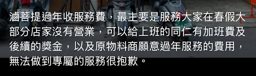 Read more我從您們在大墩12街賣滷味時就開始吃了,但發現您們的服務越來越差。 我是在2025的過年期間消費的,在付錢後看明細才知道有收服務費,已經違反《消保法》。 並且以正常邏輯來說,不管今天吃多少錢,有收服務費就等於是要幫人服務對吧?一般的餐廳服務包含帶位、告知注意事項、點餐、端餐、用完餐後收拾碗筷等等,在這其中都能感受到被服務、有用心注意細節。 可是在您的餐廳消費時,點餐前沒有特別交代不能再續點,是消費後才知道的,有些注意事項沒有先告知,只有人員送菜單過來,讓我們自己點餐,點餐也是自己去櫃檯、餐具要自己拿,還有很多小細節沒有做好,例如桌子跟別桌靠太近是我們自己搬開、沒有說明近期優惠、菜單有部分更新卻沒有標明等等…請問既然這樣,為何還要收服務費? 我也有去吃其他間幾千塊的料理,有點餐廳是要自己拿碗筷的,所以沒有收服務費,也有餐廳是要自己端料理到位置,所以不收服務費。如果你 們今天希望走精緻餐廳或高級餐廳的路線,要收服務費就需要注意這個細節,如果你們想要的是讓客人自己拿碗筷,那請問收服務費意義何在? 我這裡不是說你們不能收服務費,而是如果要收,就要讓人感覺到我付這個服務費是有意義的。 您在IG發文時,貼文下面寫說這些服務費的用意是為了辛苦的員工,這個邏輯不太對,給員工的話應該是公司自行體恤而給的,而不是拿服務費補貼,為何來這裡消費的客戶需要為您的員工補貼費用呢? 我在您的貼文下面留下了我的建議,卻被隱藏留言,只好...