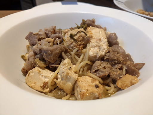 Read more如果你是個重視口味的挑嘴人 這家店絕對滿足你味蕾! 說真的...這家店完全顛覆我的想像 外頭那不起眼的招牌 甚至有點兒醜的卡通繪圖 我只是路過真的不會走進來探店 但還好有很懂吃的朋友 把我帶進來了 抱著試試的心態 嚐鮮 畢竟我不是個很挑的人 什麼都吃 但能被我寫評 跟說好吃的店 真的沒幾家 這麼愛吃義大利麵的我 他們的麵真的讓我想狠狠吃他個四盤沒問題! 麵的軟硬度拿捏的很有分寸(但這個很主觀 可是是我的愛的口感) 老闆娘一開始有先詢問我們喜歡的口味跟不吃什麼 我是個客家人 我和老闆說我們喜歡濃郁的味道 不是鹹這麼單調的味道 是濃郁的重口味 我們點了 臭豆腐蝦麵 和一個沒有在菜單上的隱藏豬肉麵 老闆說是她還在測試的私人料理 但是口味我絕對符合 果然...一嚐下去驚為天人! 明明我跟朋友都不餓 只是外面天氣太冷想找一家店待著 竟然把那碗吃到湯汁都沒剩 只差沒舔盤... 那個味道我還從來沒在一個餐廳上吃過一樣的 有點像麻辣鍋與酸菜白肉鍋的那個香味 又有奶白醬的那個味道 很難形容的口味 但真的很香!! 那個臭豆腐跟蝦的搭配也是恰到好處 我還是要做說一次他的義大利麵 叉子捲成一球送進嘴裡的那個紮實口感 太爽了! 當時跟朋友兩個人吃完都好想再點一盤隨便什麼口味的都好 完全信了這個老闆娘對食物口味上的魔法 但老闆娘說她準備要關店了...