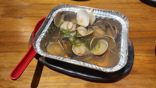 品項真的好多!特別推推清酒蛤蜊很新鮮,清酒加熱後的酒香跟蛤蠣的鮮氣融合在一起好讚,朋朋直接把鋁箔拿起來乾掉精華湯?海港刺身生魚片切的很厚,鮪魚鮭魚旗魚,上面有點綴魚子醬,而且少有吃到鮪魚口感是紮實軟嫩的!炸蝦春捲的外皮很薄,炸蝦裡面有一些芥子醬跟凱薩醬,口感層次豐富,也是蠻推推的(才180可以點吧)。