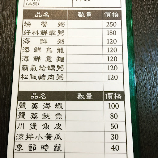 除了粥品外,店內還提供多樣的小菜,如鹽蒸魷魚、鮮蝦、蛤蜊等,這些小菜不僅鮮美,價格也非常實惠,讓每次來這裡用餐都感覺物超所值。若你是海鮮愛好者,絕對不能錯過這間餐廳。