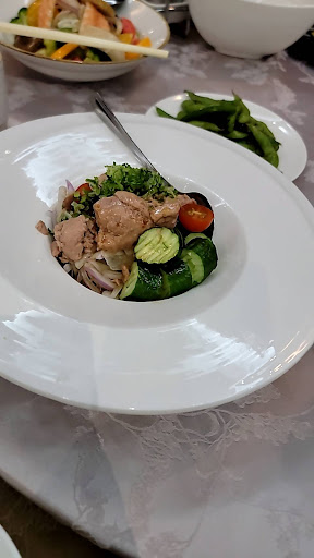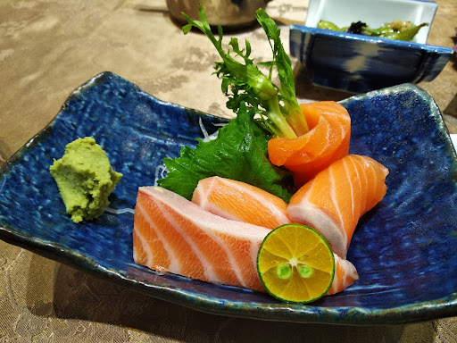 Read more今天跟家人來吃飯,下午五點就到了,這次點了八百元的套餐。 招待的小菜是干絲跟毛豆,吃起來中規中矩,生魚片全鮭魚,第一片吃起來很鮮甜,後面幾片不知道是不是味覺疲乏,就覺得還好,而且有的肉有點硬(?),但是附的金桔搭上鮭魚味道很好,沙拉普通,好像是油醋醬,有點鹹,上面有顆鮑魚,牛肉串的肉蠻大塊的,上來的時有驚訝,不過同桌其他人沒有都這麼大,肉串很不錯,咬下去有肉汁又不會膩,而且也不會太硬,烤過的鮭魚壽司我覺得比生魚片好吃,茶碗蒸上面有大顆蛤蜊,蛤蜊太有嚼勁我不愛,但是很鮮,茶碗蒸裡面雞肉咬下去雞味有點過重,蛋是嫩的也算不錯,最後上的鮮魚湯魚塊很Q...