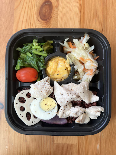 Read more便當清爽不油膩,且味道是夠的,不會像一些健康餐沒味道。除了主菜(肉類)之外,有兩樣主要的配菜(通常是兩樣葉菜)跟一個泡菜、半顆水煮蛋,還有兩三樣副的配菜(吃過玉米、毛豆、蓮藕、番茄、地瓜..等)。 蠻特別的是到店裡自取或內用有自取價,是外送價的85折,自取比較划算~