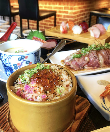 鮭魚蒸飯:滿滿料的日式蒸飯、上方鋪上鮭魚卵、整體吃起來入味又鮮甜!