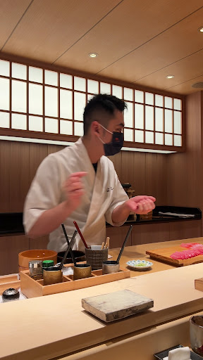 小菜會看客人情況一直回補,也會知道客人不吃什麼,茶水也是一直添加跟更換,桌面不會有冷茶出現,桌邊的擦手毛巾也換了3次。 也會默默的幫客人斟酒~ 師傅們上菜不疾不徐,用餐也是慢慢的品嚐,不會很快就把菜都上齊,要你吃完走人,完全就是日料法餐慢慢吃。 不小心咳嗽一下,什麼都沒說桌上就自動跑出一杯水,真的是非常細心的店家。