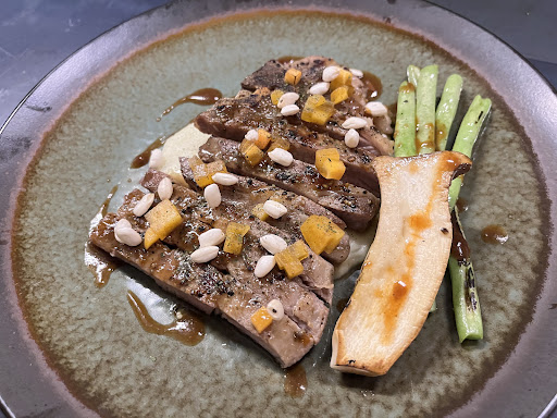 6、瑞克洛豬🐷$500:甜柿的加入完全沒有衝突,反而提升一絲甜味,豬排嫩中帶彈,還有添加烤薏仁來增添脆感。杏鮑菇跟長豆多汁,但最讓我喜歡的是下層的馬鈴薯泥,讓我吃2球都沒問題,馬鈴薯泥經過手工過篩,非常綿密細緻,如此費工,只為呈現最完美的口感。