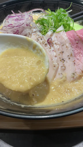 幸好是17:30才開 第一輪就吃到 再晚個5分鐘就要在外面排隊了 這家是有囍前老闆開的 一開始沒有抱任何期待 因為之前去吃有囍的臺灣鹹就是死鹹 印象不好 但這次🤩泡系雞白湯 湯頭好濃又不死鹹 又有檸檬皮的清新香氣很喜歡 用調理棒打出泡泡的濃郁感真的好👍 吃到一半超想加飯 但當天胃口沒很好 還是放棄 最後每天限量的巴斯克也是讚 目前跟福屋並列最愛😍 整體評論4.5⭐️