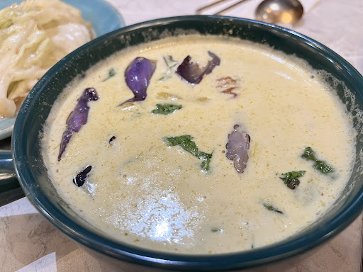 Read more✦ 食物的部分 𖧹 南洋椰奶雞湯麵🍜 雞肉很嫩不乾柴,份量也不少,感覺有先醃過,吃起來是檸檬雞的口味 配料意外的多,也有蠻多意想不到的配料,有木耳、杏鮑菇、洋蔥、豆芽菜、小貢丸 我還有再加蝦子、火鍋豬肉片(就是一般火鍋肉片),值得讚許的是蝦子有剝殼.ᐟ.ᐟ.ᐟ大加分🫶🏻 湯頭是好喝的,奶味也重!不過沒有想像中的椰奶味🥲 整體份量很多,麵也很多!加上配料的部分,根本就是在吃小火鍋的感覺ჱ̒⸝⸝•̀֊•́⸝⸝)但可能是煮製的方式,所以配料和麵沒有很入味,小小可惜~ 我自己一個人完全吃不完,肚子已經飽成一顆皮球了,但還是剩了一些麵,抱歉了麵麵…不知道下次可不可點飯少或麵少 𖧹 粗粗的脆薯🍟 沒有名字寫的粗🤔(比麥噹噹的粗),沒有非常特別但是好吃!夠脆、夠香!現炸薯條就4讚 𖧹 手標泰式奶茶🥤 好喝!茶味蠻香的~ (老闆說飲料都固定甜度、都是去冰) ✦ 掃碼點餐,可以付現也可以LINE Pay、Apple Pay,好像也有Google Pay、全支付 ✦ 老闆人很親切👍🏻 ✦ 裝潢蠻用心、好看的!音樂是華語歌,但蠻特別的從老歌雨蝶到多人合唱版本的抖音歌都有🤣 ✦ 一個人來沒問題,兩人約會也ok,多人聚餐也適合! ✦ 第一次看到這樣的泰式餐廳,而且主打宵夜!綠色(迷客夏)草皮招牌很吸睛!上次經過就有看到,但沒有開,也沒有在Google...
