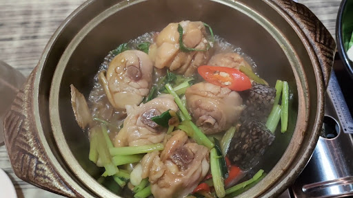 我們點了 1.極品花雕雞鍋 先炒後加湯變火鍋