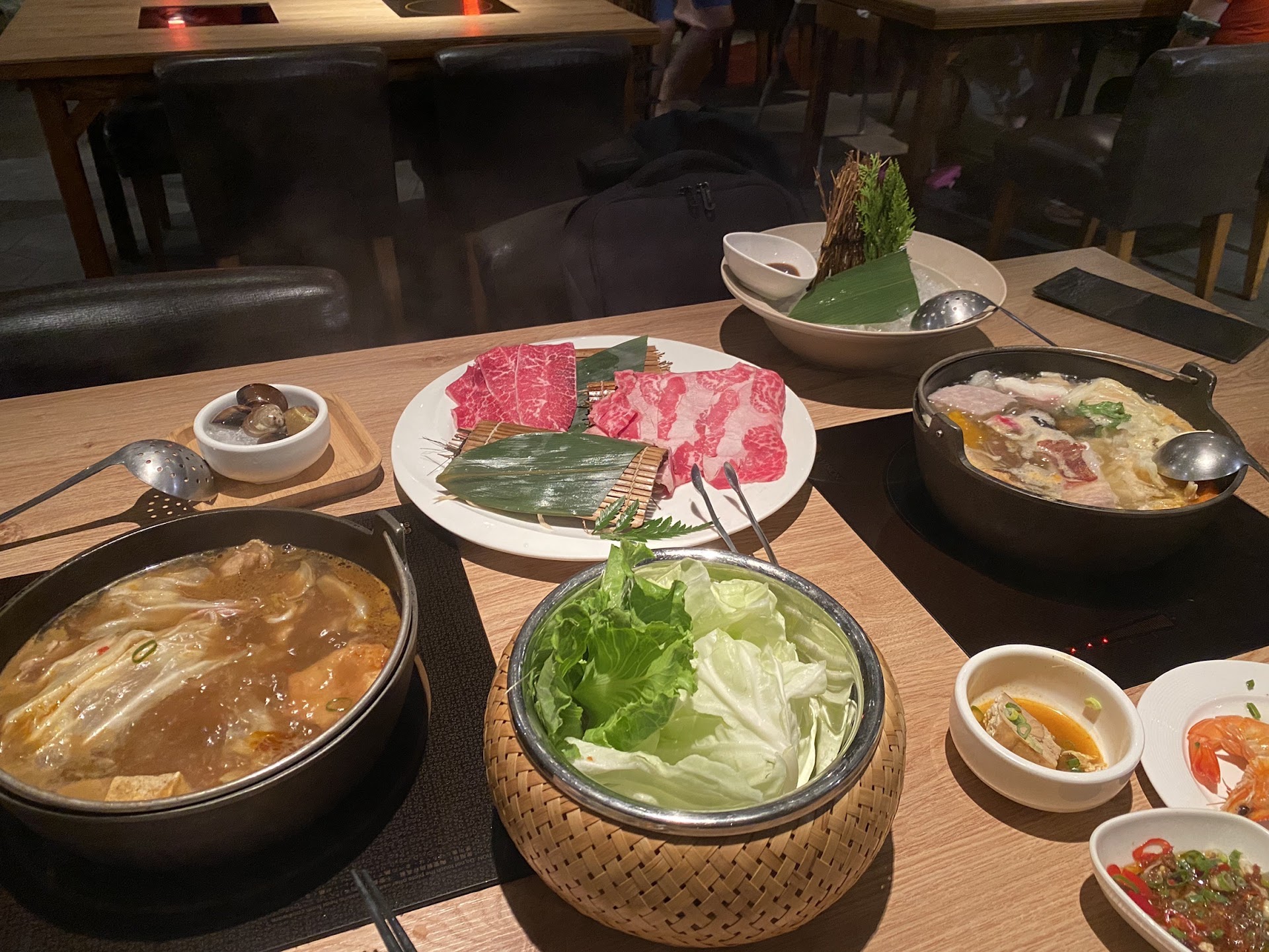 #Meal ⭐⭐⭐⭐ On the day, order the first-time seafood single pot, chicken soup as the soup base. There are also four single-person pots at the same table, with different soup bases, including pepper pork belly chicken and so on. The overall taste of the soup base is light, not strong, and without thickness, so the ingredients cooked with various soup base flavors taste similar. Vegetable platters, meat platters, and seafood platters are of average freshness. The seafood plate includes fish, angel red shrimp, large white shrimp, and large clams. The meat of the red shrimp is loose.
