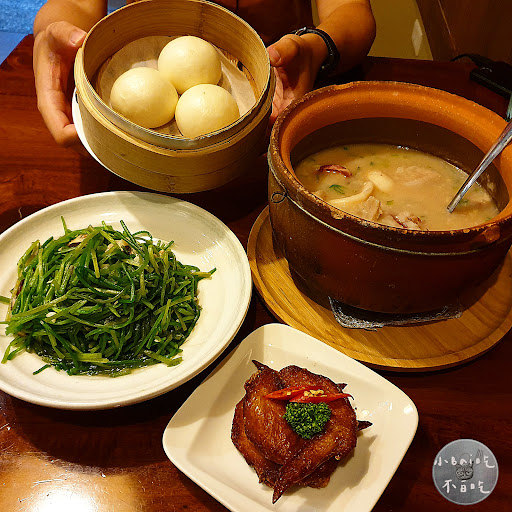 Relaxed restaurant with outdoor seating specializing in traditional rice porridge dishes & tea.