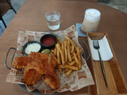 Tucked away in an alley just of People's Park, a clean and modern interior. I had fish & chips with a hazelnut -chocolate latte. The first was very soft and juicy, no bones and the batter is tasty. Accompanied by crispy fries and a proper Tartar sauce. Also love the hazelnut crumble on top of the coffee. I recommend this place and can't wait to come back for brunch or afternoon tea as their pastry...