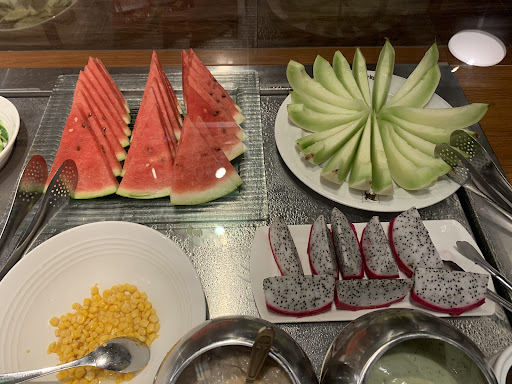Read more餐廳很清幽不嘈雜,自助菜色依舊是萬年的毛豆、 木耳、涼扮鴨掌、 涼扮雞腸,水果甜點口感水平一致,很療癒。雞翅跟白蝦是亮點,主餐不要選大明蝦,會覺得好瞎。“選生日當天來吃才划算”。( 疫情前覺得如此)