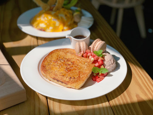 📌法式厚吐司 $260 店內的雞蛋都是用昀昇蛋品,厚吐司是主廚自己做的,重點是上面的兩顆馬卡龍也是主廚親手製作,吃起來完全勝過在百貨公司販售的馬卡龍,這道餐點光是兩顆馬卡龍就回本了,法式吐司搭配慕斯冰淇淋,再淋上加拿大楓糖漿一起吃,真心覺得這道甜點是必點之一。
