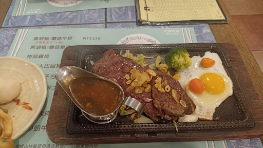 Read more最低價的排餐是318 含沙拉吧 吃到飽 不點排餐 沙拉吧 只要278(成人) 不加服務費 菜色不能說到非常多 但想吃什麼有什麼 豬雞牛海鮮 都有 只是因為這種價格來說 沙拉吧方面比較少海鮮 排餐 我點的是最便宜的牛排 我覺得好吃 味道跟肉質我都沒有意見 沙拉吧方面 有自煮泡麵區 搭配各種醬料(我沒吃這區我忘記有哪些醬料可以拌麵) 有剉冰區 有多種料可以自己加(大紅豆 綠豆 薏仁 仙草 愛玉 煉乳 一大罐濃稠到我以為是蜂蜜的黑糖漿,有很多店家提供的黑糖都是水水的那種...) 自挖冰淇淋區 現磨咖啡 飲料... 生菜沙拉 也有好幾種醬料 涼麵 跟一排會換菜色的熱食 像昨天我就吃到了海鮮腸粉 蒜味烤雞胸 蒸蛋 小香腸 鮮蔬 苦茶油拌麵線(這道很香很好吃) 清燙甜玉米 ... 沒吃的還有炒河粉 酸菜鴨 韓式辣炒年糕