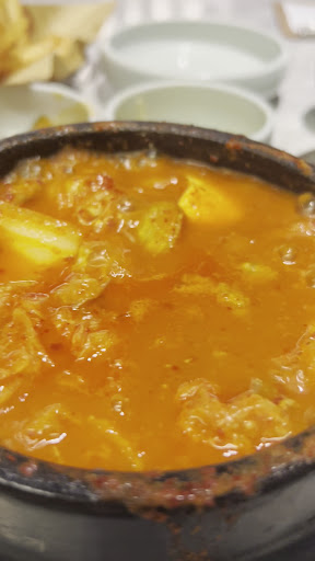 2.當天我們點了一份大醬鍋,當時服務生端來的時候,大醬鍋非常的滾,所以邊端邊撒,直到放上桌前,已經撒了桌上地上,這都沒關係,能體諒東西非常燙,但服務生放上桌後就一句話也沒說就這樣走了!走了耶?!連隔壁桌都在看地上撒了一灘的湯,我跟友人對看覺得傻眼至極,後來我們拿桌上整疊的衛生紙慢慢清,端湯的那位服務生再次經過我們也只是瞅了我們一眼,...