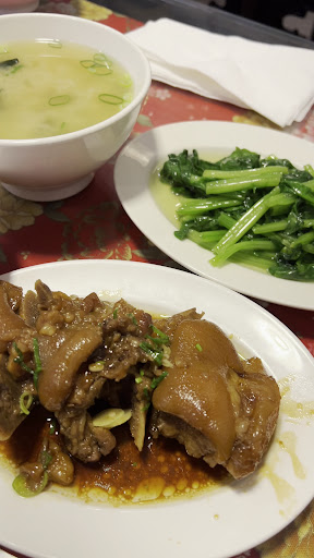 The pork knuckle is perfectly tender, with the skin and meat melting in your mouth. It’s rich, flavorful, and served with a savory sauce that pairs beautifully with steamed rice. Each meal comes with generous portions, often including vegetables and a marinated egg — simple but satisfying.