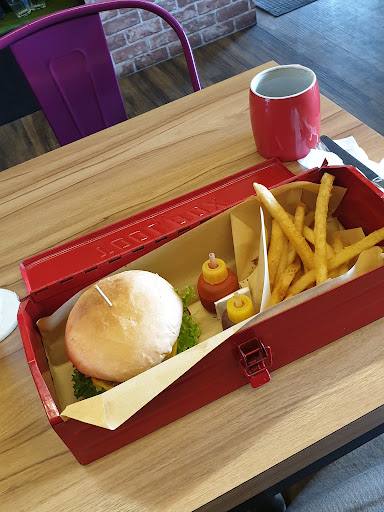 It's an interesting place to say the least. First off, there was a lot of friend food. I liked the popcorn chicken I ordered, but just beware if you aren't in the mood for fried food. Otherwise, I would describe the feeling of the restaurant as Instagram ready. Lots of colorful chairs, walls painted in sections, drinks served in beakers, burgers in toolboxes. It's eclectic to say the least and definitely ready to like, tag and share.
