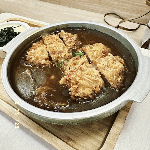 主餐部分,選擇多樣有炸物定食、咖哩鐵板定食、壽喜鐵板定食、味噌定食等,最推薦的是 厚切豬排,外酥內嫩,咬下去肉汁飽滿,厚度和口感都讓人驚艷 。另外還有黑咖哩腰內豬排,咖哩濃郁微辣,搭配豬排特別下飯;另一款 熔岩起司豬排 更是誘人,起司牽絲效果超犯規 。