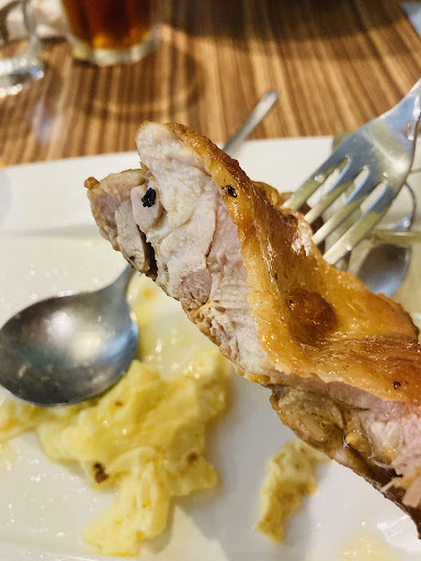 泰式酸辣嫩雞燉飯 米飯Q彈有嚼勁,不會過於軟爛。搭配附上的一角檸檬,擠上後酸香更明亮。酸辣感適中,調味非常恰到好處,很推薦喜歡吃酸的饕客嘗試!這道餐點我們升級成了套餐,剛好遇上十週年優惠,升級價格也很划算。套餐內的濃湯非常濃郁順口,搭配附上的麵包更是絕配。