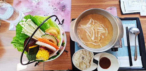 柴魚味噌鍋 湯頭濃郁有層次,喝起來很有味道。附的沙茶醬偏甜,且是純沙茶,沒有額外加入醬油或蔥花,個人比較偏好台式鹹香風味。如果喜歡甜口味的朋友可以試試。但即使不搭配沾醬,湯頭本身已經很夠味,食材也能吃出原汁原味。菜盤擺盤細緻,份量剛剛好,吃起來很舒服不會太撐。