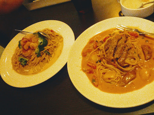 Read moreThe sauce of their "Casentino"(?) spaghetti (可森塔諾茄汁牛肉義大利麵) is a long-time favorite: a tomato and cream base, with garlic, bell peppers, capers, black olives, and who knows what else. If it was a soup, I would drink it!