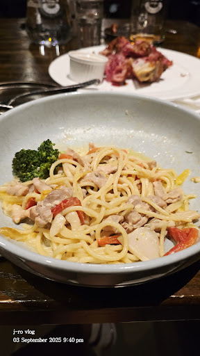 My personal food was terrible, pork knuckle and mushroom risotto weren’t great. Mushroom risotto had a ridiculous almost obscene amount of mushrooms and had a bad aftertaste and the pork knuckle just was not cooked well. My girlfriend got the creamy chicken pasta which she enjoyed and the fried appetizer platter was good. The beer also too was very good. The atmosphere and ambience is really nice as they have a ton of seating inside and outside and gives a very European feel. However, the service was terrible, the waitstaff did not come up and check on us one time throughout the whole time we dined and anytime we needed help we had to go and get up to get their attention. They did not refill our beverages one time or ask us about that during our whole time there. Besides giving us our food, the waitstaff was pretty nonexistent as we continually waited and waited to order food and anything else we may have wanted. The time we went, the restaurant wasn’t even packed or had many customers. I would recommend coming here to get some appetizers and some drinks casually if you do not mind bad service but if you are looking to enjoy some of their entree items and enjoy a whole meal, I would not...