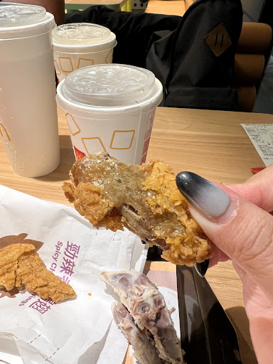 Read more#玉米濃湯有蟲 #雞翅黑的 #可樂沒味道 晚上10:30到的 原本看新開的很期待來 來的時候剛開始的服務人員態度很好 後來結帳的時候是新來的店員 不知道是不是完全沒結過帳 連數錢都要旁邊的店員教 應該要先教育訓練完再來站櫃台才對吧 我就在那邊等他慢慢來 不會數錢、不會用POS機?? 好 然後這原本都還好 接下來更瞎^_^ 可樂沒味道 我還誤以為我點成零卡 但經過確認也不是(一送餐就喝了並不是等融化) 而且兩杯都是這樣⋯⋯ 再來玉米濃湯有蟲、玉米粒也超少 沒吃過這樣的玉米濃湯。 還有勁辣香雞翅皮超厚...