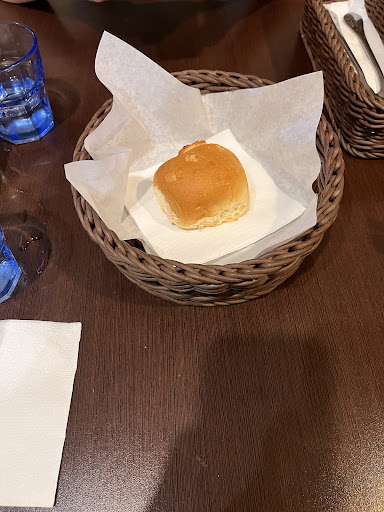 餐廳最重要的餐點部分,我點的是蛋黃醬義大利麵+套餐,要價約450,餐前麵包參考下面圖片,真的就只給一個Costco奶油餐包...