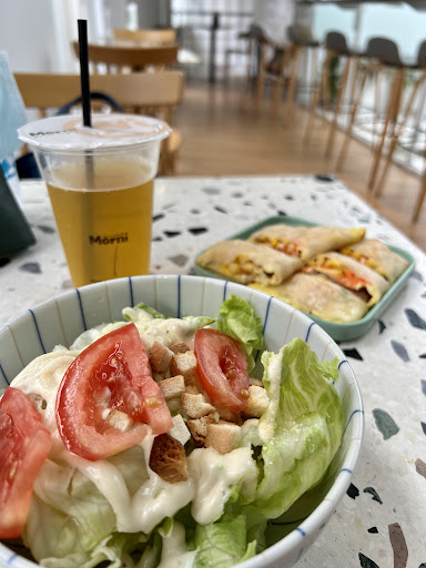 以前住別的縣市喜歡吃莫尼,今天吃沙鹿店也沒有失望,點的總匯蛋餅65、凱撒沙拉55、菁茶20、這樣才140元,有涼涼的冷氣、舒適的座位、親切的服務、美麗的室內裝潢,早上時間附近好停車,真的很超值,門口有寫沙鹿人憑證件可打88折(這也太太太太佛心了吧,可惜我不是),付款還可以用行動支付line pay和Taiwan...