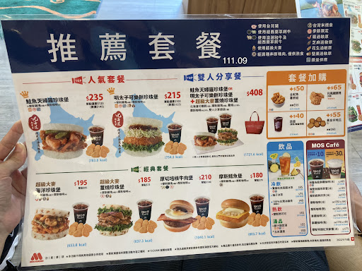 這家新開幕的摩斯漢堡2樓空間廣大,燈光明亮,座位約60個以上,廁所乾淨。也有八人長桌供會議聚餐使用。是近來看過最舒適的摩斯漢堡。