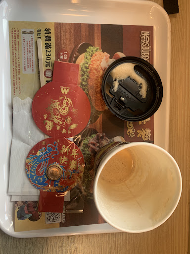 Read more位置於台中市北屯區,交通少許擁擠,附近商家少許,生活機能好,環境少許吵雜,停車非常不便,人潮眾多,服務尚可(口氣僵硬),價格公道,食材新鮮,料多實在,烹調(製)技巧熟練,口味,口感適當,摩斯漢堡松竹興安店 店門口比較不好停機車,建議停在門口左邊的路,停車格蠻多的。店內明亮寬敞,桌跟桌的距離不會太近,中午用餐時段人潮較多,但是店員點餐速度也蠻快的,出餐速度尖峰時間需等待約15分鐘。雞肉地瓜沙拉搭配和風醬蠻適合給減肥中的人吃,地瓜很甜,但整體份量還是偏小,不過摩斯大概所有的商品份量都如此。藜麥燒肉珍珠堡是牛肉,個人覺得比海洋珍珠堡(不知為何身旁的男性都只吃海洋口味)跟薑燒豬肉都好吃,好像還有新上市烤雞珍珠堡,決定下次再點。份量就是女生吃完會覺得剛好的量。摩斯的咖啡不苦不酸,沒什麼特別的。紅茶很好喝,加3個奶油球會更好喝。在星期一下午五點半左右來店外帶,雖然可以理解餐點都要現做,但是以店內沒啥顧客的情況下,出餐速度還是有點太慢了…當然明太子可樂餅還是很有水準的,只是建議大家都要預約,不然可能等到地老天荒,是不錯內用,聚餐...