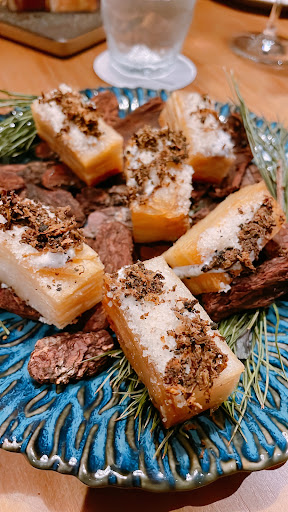 能接受餐點不多。松露馬鈴薯千層,這道真的特別,馬鈴薯香氣也很香,松露味道淡淡的,但也是剛剛好份量~牛肝菌菇燉飯味道挺濃郁,米心也煮的比較軟是台灣可以接受的硬度,小羔羊肉質真得很軟嫩,雖然外表看起來有點生,但實際上是可以接受的味道,騷味也不重,但給的佐醬有點像是牙膏味...