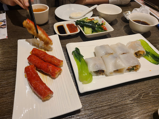 The restaurant also offers appetizers such as pickled cucumbers and tomatoes, among others. Roasted meats such as chicken, duck, and pork are readily available and kept warm in traditional dim sum carts.