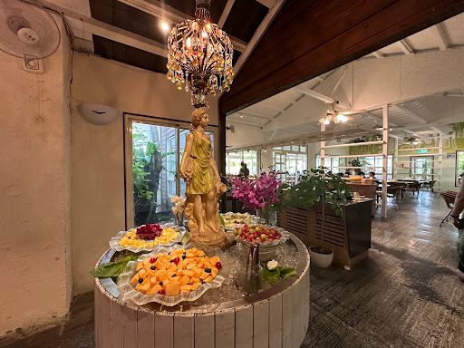 The Pros: Nicely designed garden and overall environment. It's a good place for families with kids, and even to host small party groups. The food (mostly vegetarian) includes a salad bar and a main course. The taste is natural and fresh, and there is a choice to steam some of the vegetables by yourself. A lot of what they offer is planted at their farm next to the restaurant.