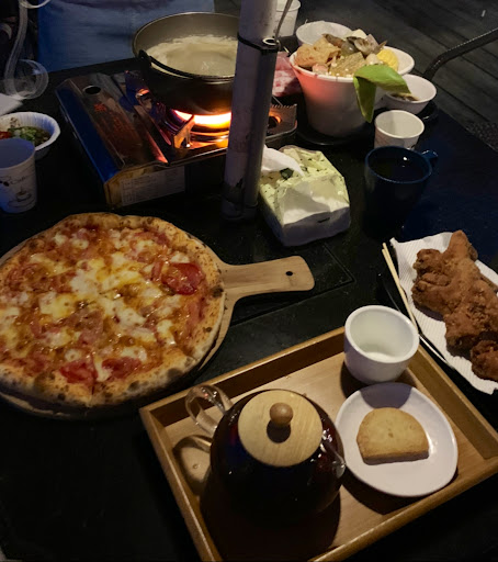 The margherita pizza was pretty good. The crust was soft and chewy, and I would definitely order this again if I were to return. The hot pot was very simple and a bit underwhelming as it had a few ingredients: 6 small slices of meat, one pumpkin, one corn, some vegetables, one shrimp, and 2 clams. The hot pot is best for one person only. The soup is nice to drink at night when it is cold. If you are sharing food with a group of people, then ordering one hot pot is not enough; I would suggest you to order one hot pot, multiple pizzas, and the fried chicken wings. I also don't think the food was overpriced; it was average. Although I missed the sunset because it was cloudy on the day I went, but the night view was still very beautiful and Instagram worthy. The longan tea 桂圓紅棗茶 was very good as well!!!!