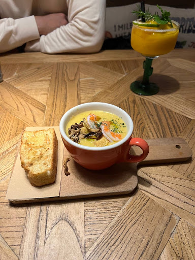 The corn soup with shrimp and potato & cheese was pretty good. The pulled pork sliders also delivered its flavors however the coleslaw (which came full of onions) that came together was honestly disgusting. The fajita still had parsley sprinkled on top of it, the chicken was good just that the fact that parsley was still added onto it was negligent. THE SQUID INK SPAGHETTI WAS SO BAD. We couldn’t even finish it. There was no taste whatsoever and the squid was way too salty.