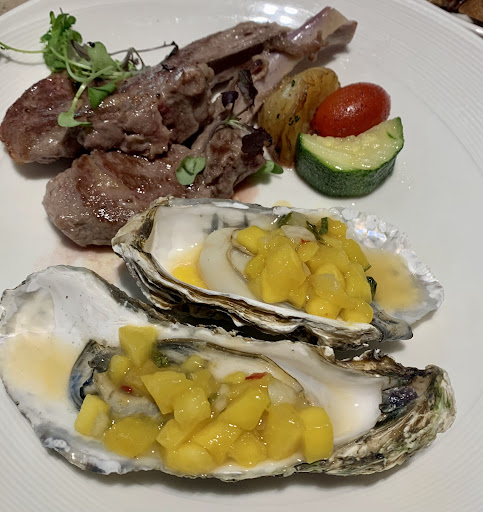 我們點的是最便宜的主菜,羊排配生蠔佐芒果莎莎、雞排配和牛麵包蝦。 羊排很嫩,生蠔配芒果莎莎很新鮮的組合,味道還不錯,但是生蠔的海味沒有沒有那麼明顯,但是好吃的! 雞排是用烤的但是皮超脆又不會老,好吃!那個麵包蝦只覺得外皮炸的很脆,我沒有慧根,不知道它是和牛裹蝦子🤣🤣
