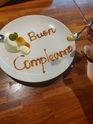 When they heard that it was my birthday, they have offered us a dessert with happy birthday written in Italian on it.