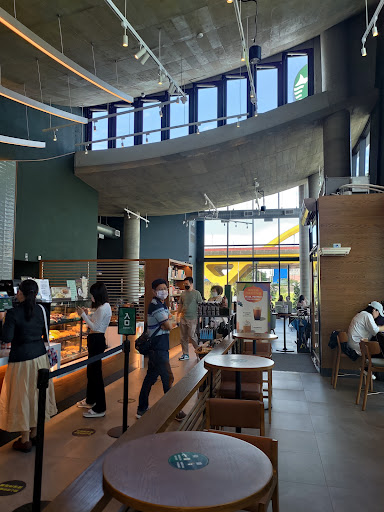 Read more位於松竹洲際路口、距離洲際棒球場不遠,全台首間結合運動棒球元素的星巴克門市,曲線屋頂配上大片落地窗,裝潢非常漂亮吸睛!除了一般星巴克週邊商品,也有限定棒球主題週邊商品,同時也有得來速車道及停車場~ (可能因為附近沒有甚麼住家或辦公室的緣故,來這邊的人幾乎都一定要開車或騎車,所以就有附設停車場,同時附近路邊也都可以停車、算是parking容易的地方)