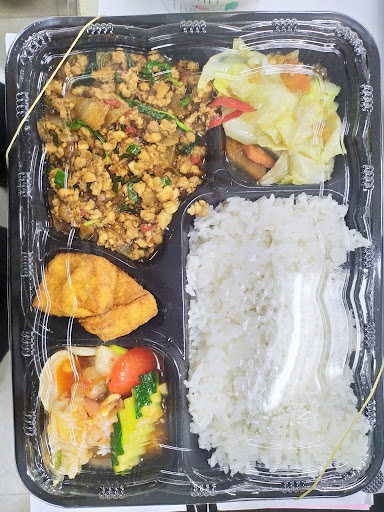 2021.6泰式打拋豬(商業午餐)$179,限定W1~W5。主食-泰式打拋豬,一開始吃覺得辣,吃到底下時不知道是習慣還是怎麼的,覺得不會辣了,辣度是喝完涼水就剩一點點辣;蝦醬高麗菜是裡面覺得最好吃的,蝦味很重,覺得吃起來很鮮甜;涼拌海鮮,有一隻蝦球和一顆蛤蜊,吃起來酸酸甜和辣;炸雞蛋豆腐,覺得是裡面最普通的,也沒有什麼泰式的感覺;甜點-摩摩喳喳,裡面有西米露,喝起來酸甜甜的,一開始味道不太喜歡,但越喝越可以接受,裡面的料吃起來奶味很重,總體來說我很喜歡,就是對我來...