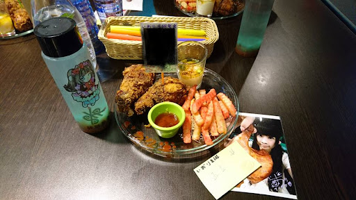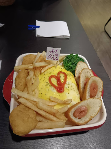 Western-style comfort food served in an anime theme venue with waitresses dressed as cosplay maids.