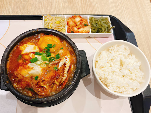 Surprisingly, neither of the two vegetable sundubu options are vegetarian because of the soup base. When I asked the hostess whether they were, she pulled out a separate one-pager for their special vegan sundubu, which listed all of the ingredients: soft tofu, fried bean curd, cabbage, king oyster mushrooms, enoki mushrooms, lotus root, Korean rice cakes, spinach, tomatoes, and okra. It comes with white rice and three banchan (non-refillable), but let them know that you want one of them to be kimchi if you’re not Chinese Buddhist and love garlic; otherwise, you’ll end up with two sides of soybean sprouts. They’ll also ask if you want a complimentary side of chili powder to spice up your sundubu. You can sub the white rice for an extra helping of soft tofu for an additional NT$10. 10% service fee not included. I enjoyed my sundubu very much: it definitely hit the spot on...