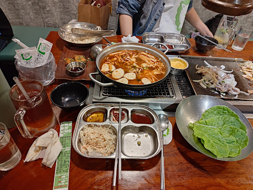 Straightforward restaurant specializing in barbecued meat & vegetables cooked at the table.